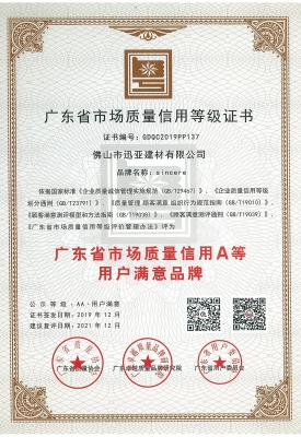 Top A Grade Enterprise of Client Satisfied Credit and Quality in GUANGDONG