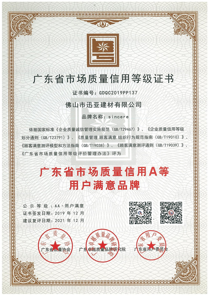 Top A Grade Enterprise of Client Satisfied Credit and Quality in GUANGDONG